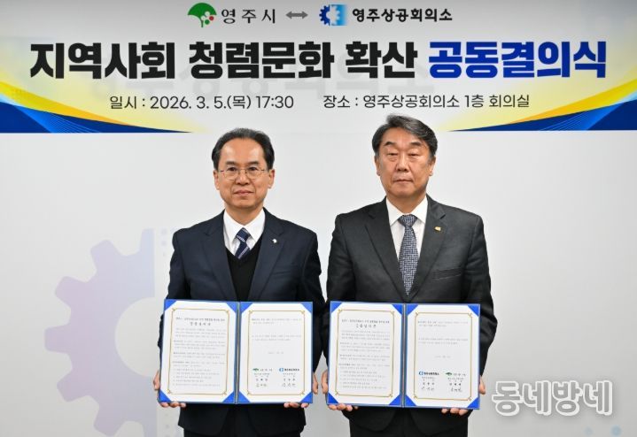 동네방네 김형규 기자 | 영주시는 지난 5일 영주상공회의소와 함께 '지역사회 청렴문화 확산 공동결의식'을 개최하고, 민·관이 함께 청렴 실천 의지를 다졌다.