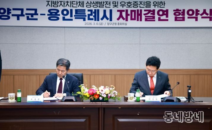 동네방네 김형규 기자 | 용인특례시는 6일 강원특별자치도 양구군과 자매결연을 하고, 두 도시의 교류와 발전을 위해 적극 협력하기로 했다.