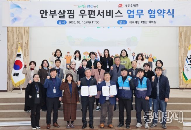 동네방네 김형규 기자 | 제주시는 3월 10일 시청 1별관 회의실에서 제주우체국(국장 오달규)과 ‘안부살핌 우편서비스’ 업무 협약을 체결했다.
