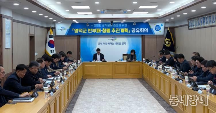 동네방네 김형규 기자 | 영덕군은 청렴하고 건전한 조직문화를 수립하기 위해 지난 17일 청사 제1회의실에서 ‘2026년 반부패·청렴 추진계획 공유회의’를 열었다.