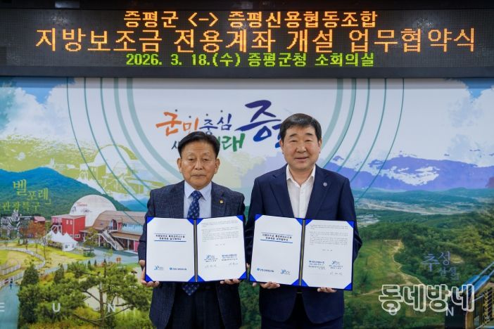 이재영 군수는 “증평새마을금고에 이어 증평신협과 추가 협약을 체결하면서 지방보조사업자의 금융기관 선택 폭을 넓히는 동시에 지역 금융기관과의 협력 기반도 한층 강화됐다”며 “앞으로도 지역 금융과의 상생을 바탕으로 보조사업자의 이용 편의를 높이기 위해 지속적으로 노력하겠다”고 말했다.