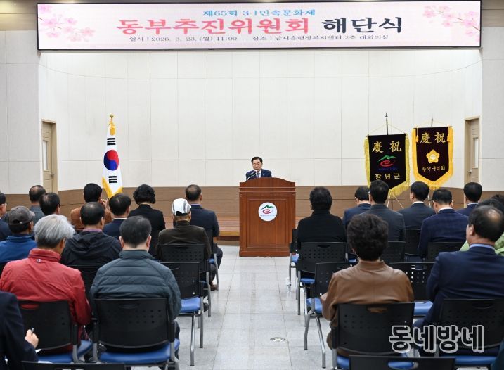 동네방네 김형규 기자 | 제65회 3.1민속문화제 동부추진위원회는 지난 23일 남지읍 행정복지센터에서 추진위원과 주민 등 200여 명이 참석한 가운데 해단식을 개최했다고 밝혔다.