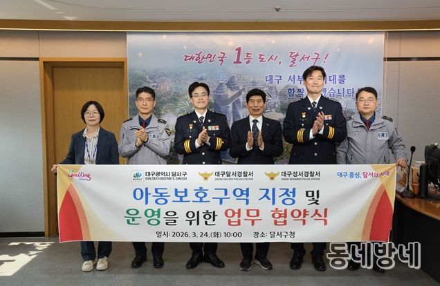 동네방네 김형규 기자 | 대구 달서구는 아동이 안전하게 생활할 수 있는 환경 조성을 위해 24일 달서경찰서, 성서경찰서와 '아동보호구역 지정 및 안전강화를 위한 업무협약'을 체결했다.