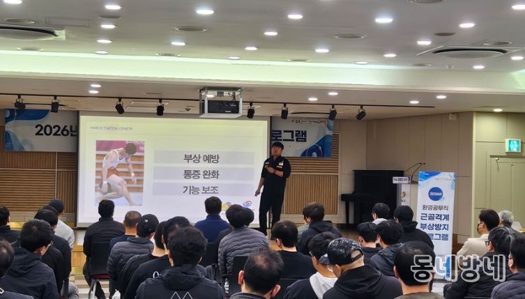 동네방네 김형규 기자 | 대구 서구는 지난 23일 구청 구민홀에서 환경 공무직 130여 명을 대상으로 근골격계 부상 방지 프로그램을 진행했다.