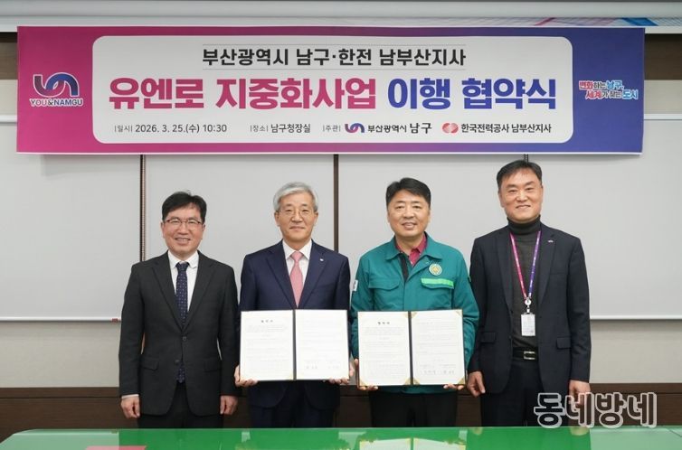 동네방네 김형규 기자 | 부산 남구는 '유엔로 지중화사업'과 관련해 지난 3월 25일 오전 10시 30분 남구청에서 한국전력공사 남부산지사와 업무협약을 체결했다고 밝혔다.