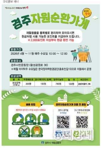 동네방네 김형규 기자 | 경주시는 재활용품 분리배출 활성화와 자원순환 문화 확산을 위해 ‘자원순환가게’를 운영한다고 26일 밝혔다.