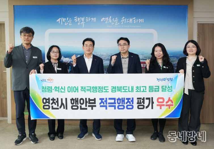 시 관계자는 “2025년 권익위 종합청렴도와 행안부 지방정부 혁신평가에 이어 적극행정 평가에서도 도내 최고 등급을 달성한 것은 전 공무원이 시민을 위해 고민하고 실천해 온 결과”라며, “앞으로도 시민을 최우선으로 생각하는 적극행정이 시정 전반에 뿌리내리도록 해, 누구나 체감할 수 있는 ‘일 잘하는 영천시’를 만들어 가겠다”고 밝혔다.
