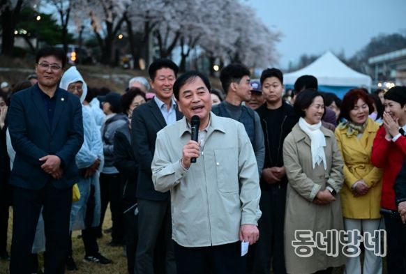 동네방네 김형규 기자 | 김천시는 4월 1일 저녁, 조각공원 앞 둔치에서 시민 2,000여 명이 참여한 가운데 ‘제12회 직지사천 벚꽃길 걷기 및 식목일 기념 나무 나누어주기 행사’를 성황리에 개최했다고 밝혔다.