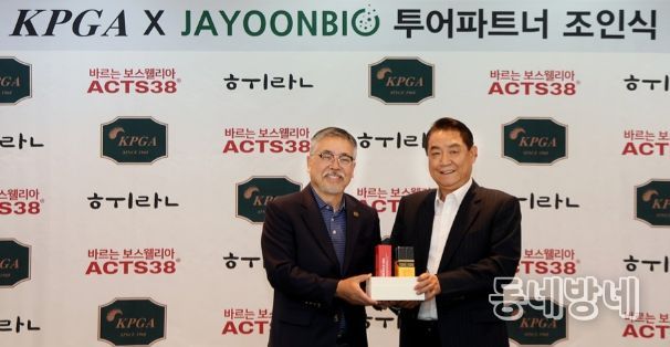 동네방네 김형규 기자 | ㈜한국프로골프투어(대표이사 김원섭, KPGT)와 ㈜자윤바이오(대표이사 윤성운)가 KPGA 투어파트너 협약을 체결했다.