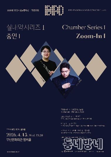 동네방네 김형규 기자 | (재)부산문화회관(대표이사 차재근)은 오는 4월 15일 부산문화회관 챔버홀에서 부산시립교향악단(수석객원지휘자 홍석원)의 실내악 시리즈Ⅰ '줌인Ⅰ'을 선보인다.