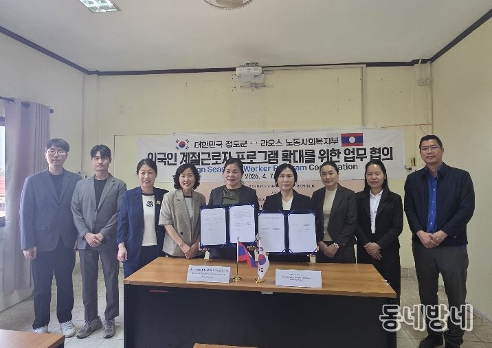 동네방네 김형규 기자 | 청도군은 외국인 계절근로자 도입 지역 확대와 안정적인 인력 수급 체계를 구축하기 위해 라오스 노동사회복지부를 방문하여 변경 업무협약(MOU)을 체결하고, 라오스 현지에서 계절근로자 선발 과정에 직접 참여하여 최종 면접을 실시했다고 7일 밝혔다.
