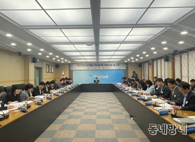 동네방네 김형규 기자 | 올해 4~5월 정부예산 부처 편성 본격화를 앞둔 가운데, 김제시가 10일 '2027년 국가예산 부처단계 대응상황 보고회'를 열어 주요 사업의 부처 대응 전략을 집중 논의하며 국가예산 확보에 박차를 가했다.