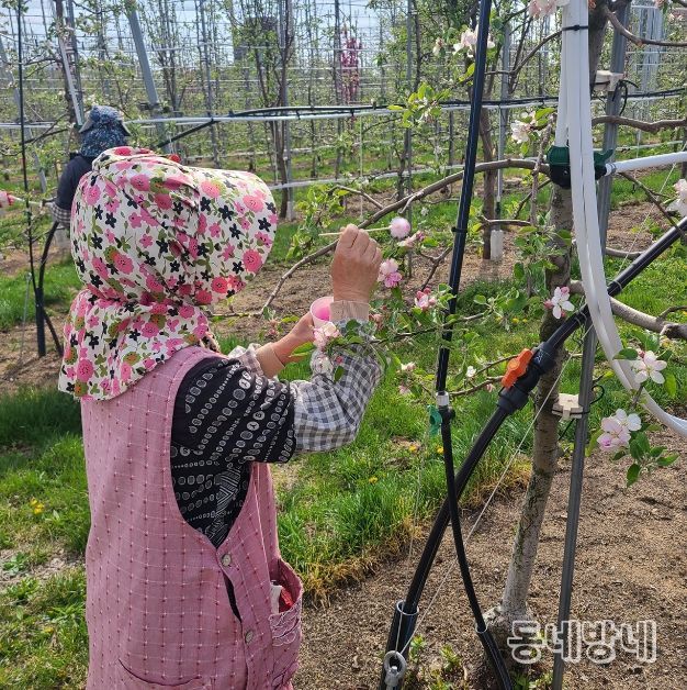 동네방네 김형규 기자 | 안동시농업기술센터는 최근 이상기상으로 인한 사과 개화기 저온 피해와 화분 매개곤충(벌)의 활동 감소에 대응해, 안정적인 결실을 위해 농가에서 인공수분을 적극적으로 실시해 줄 것을 당부했다.