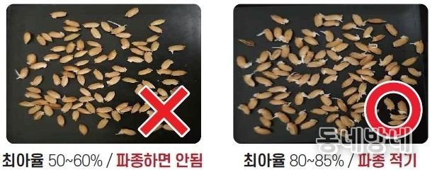 올해 파종할 볍씨의 품질은 지난해 8~9월 벼 등숙기의 고온·다우로 인해 깨씨무늬병과 수발아가 만연해 평년보다 떨어질 우려가 있어, 어느 해보다 철저한 육묘 관리가 필요하다.
