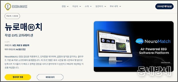 이번에 수상한 LVIS Korea㈜의 AI 기반 뇌·신경 디지털헬스 솔루션 ‘뉴로매치(NeuroMatch)’는 대구시와 과학기술정보통신부(정보통신산업진흥원)가 공동 추진하고, 대구디지털혁신진흥원(DIP)이 수행하는 ‘AI 기반 뇌발달질환 디지털의료기기 실증지원 사업’의 일환으로, 세계 시장에서 뛰어난 기술력을 객관적으로 인정받은 성과로 평가된다.