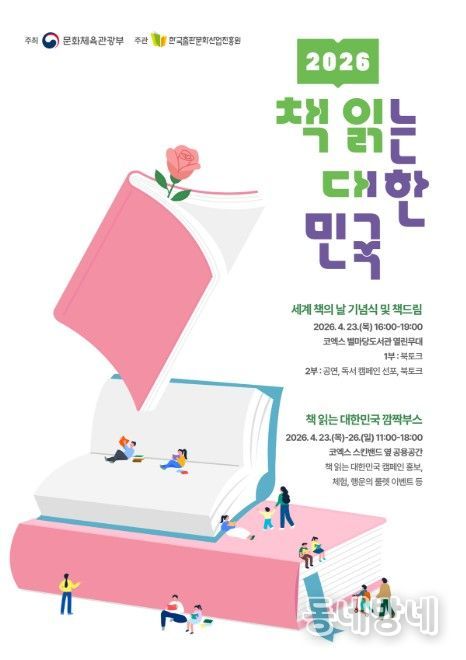 동네방네 김형규 기자 | 문화체육관광부는 한국출판문화산업진흥원, (재)책읽는사회문화재단과 함께 4월 23일 오후 4시, 서울 코엑스 별마당도서관에서 대국민 독서 캠페인 ‘2026 책 읽는 대한민국’의 시작을 선포하고 캠페인을 본격적으로 추진한다. ‘책 읽는 대한민국’은 인공지능(AI) 시대에 국민의 생각하는 힘을 기르고, 지역 곳곳에 ‘일상 속 책 읽는 즐거움’을 확산하기 위해 마련한 캠페인이다. 최휘영 장관은 캠페인 선포식을 찾아 ‘책 읽는 즐거움’ 확산에 앞장선다.