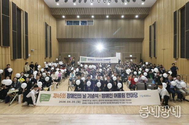 동네방네 김형규 기자 | 가평군은 20일 가평군장애인복지관 주관으로 ‘제46회 장애인의 날 기념식 및 화합 행사’를 개최했다. 음악역1939에서 열린 이번 행사에는 장애인과 시설·단체 관계자, 지역 주민 등 400여 명이 참석해 의미 있는 소통의 시간을 가졌다.