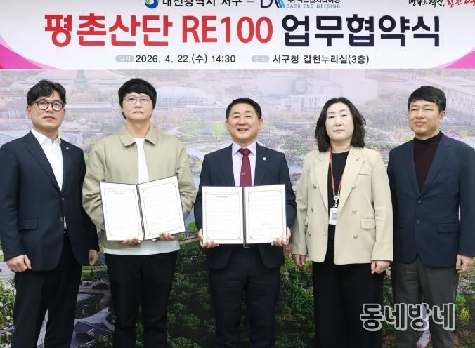 동네방네 김형규 기자 | 대전 서구는 22일 구청 갑천누리실에서 평촌일반산업단지 입주기업인 ㈜닥스엔지니어링과 재생에너지 보급 확산을 위한 ‘RE100 업무협약’을 체결했다.