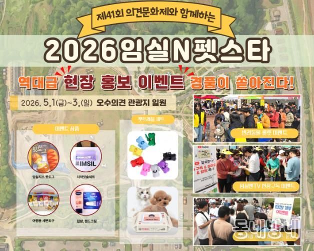 동네방네 김형규 기자 | 임실군이 오는 5월 1일부터 3일까지 임실 오수의견관광지에서 열리는 제41회 의견문화제와 함께하는‘2026 임실N펫스타’에서 반려견과 함께하는 방문객을 위한 맞춤형 현장 이벤트를 선보인다.