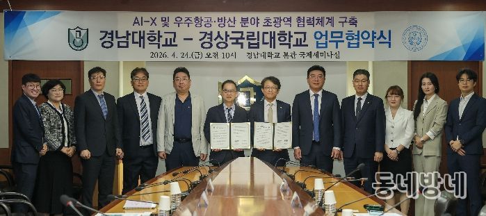 동네방네 김형규 기자 | 경상국립대학교와 경남대학교는 4월 24일 오전 10시 경남대학교 국제세미나실에서 국가균형성장과 동남권 지역 대학의 동반성장 촉진을 위한 업무협약을 체결했다.