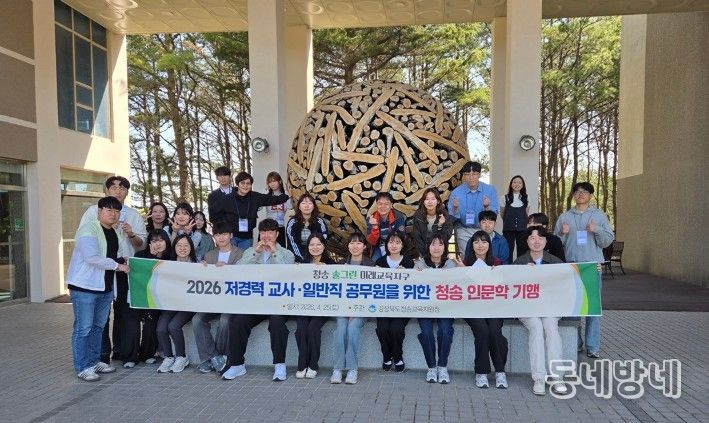 동네방네 김형규 기자 | 청송교육지원청은 2026년 4월 25일, 청송 관내 저경력 교사와 일반직 공무원 30여명을 대상으로 청송 인문학 기행을 실시했다. 이번 인문학 기행은 2026년 청송 솔그린 미래교육지구의 신규 사업으로 청송 관내에 근무하는 젊은 교사와 일반직 공무원이 청송의 인문·지리·역사를 알고, 특화된 예술 체험과 문화재 탐방을 통해 학교를 비롯한 여러 장소에서 학생에게 더 좋은 수업과 행정을 지원하기 위해 진행됐다.