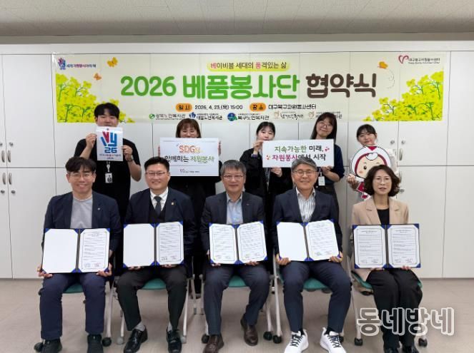 동네방네 김형규 기자 | 대구북구자원봉사센터는 지난 4월 23일, 관내 5개 노인복지관과 협력하여 은퇴 세대의 주도적 사회공헌 활성화를 위한 ‘베이비붐 세대의 품격있는 삶, 베품봉사단’ 공동 업무협약식을 진행했다.