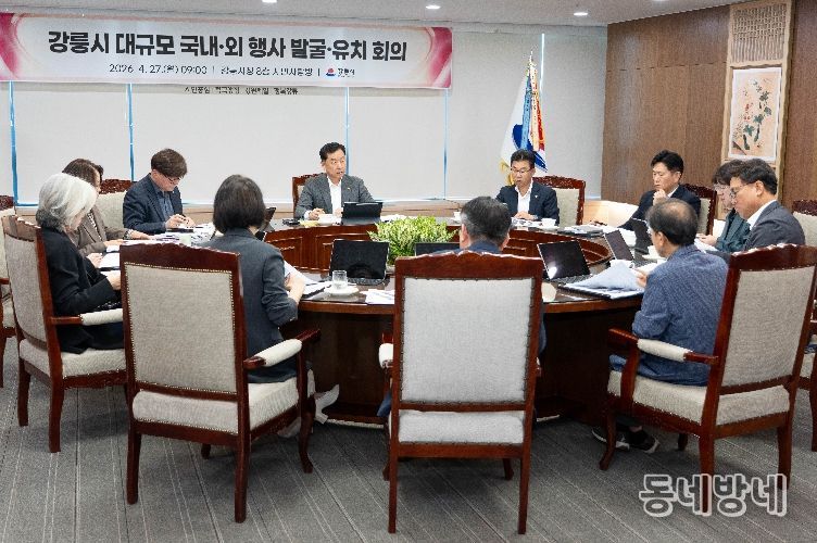 동네방네 김형규 기자 | 강릉시는 27일 오전 9시 시청 8층 시민사랑방에서 김상영 강릉시장 권한대행 주재로 대규모 국내외 행사 발굴·유치 회의를 개최했다.