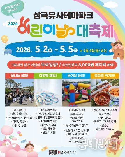 동네방네 김형규 기자 | 군위문화관광재단이 다가오는‘2026 어린이날 대축제’를 더욱 알차게 즐길 수 있는 상세 일정과 장소별 프로그램을 전격 공개했다.