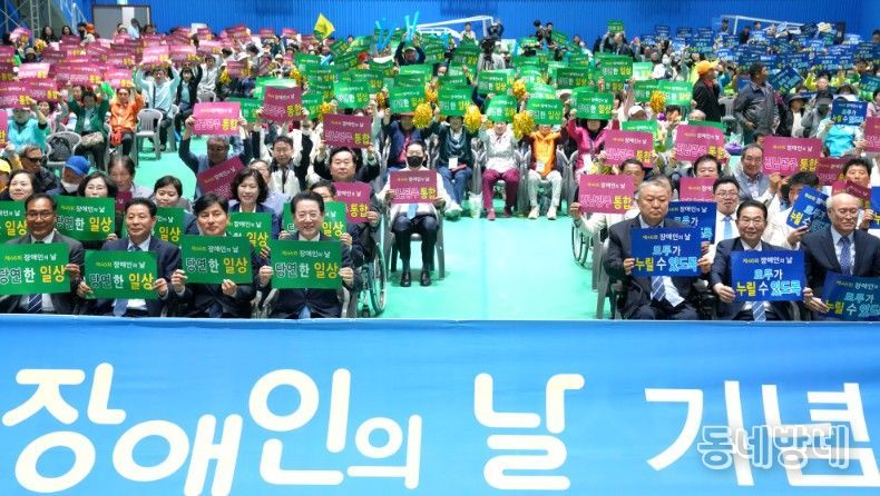 전남 장애인의 날 기념식 공동추진위원회(지체·시각·농아 단체)가 주관한 기념식에는 김영록 전남도지사, 심우정 장성군 부군수, 장애인과 가족 등 2천여 명이 참석했다.
