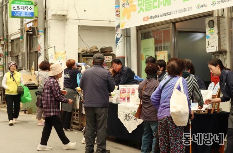 이번 행사는 지난해 '생각 솟는 실험실'을 통해 문화 공유 공간으로 탈바꿈한 상설시장 내 ‘문화상회’를 거점으로 진행됐으며, 예천군 농산물 가공제품 공동브랜드 '맛뜰리:예'와 시장 상인들이 협력해 시장에 새로운 활력을 불어넣는 데 주안점을 뒀다.