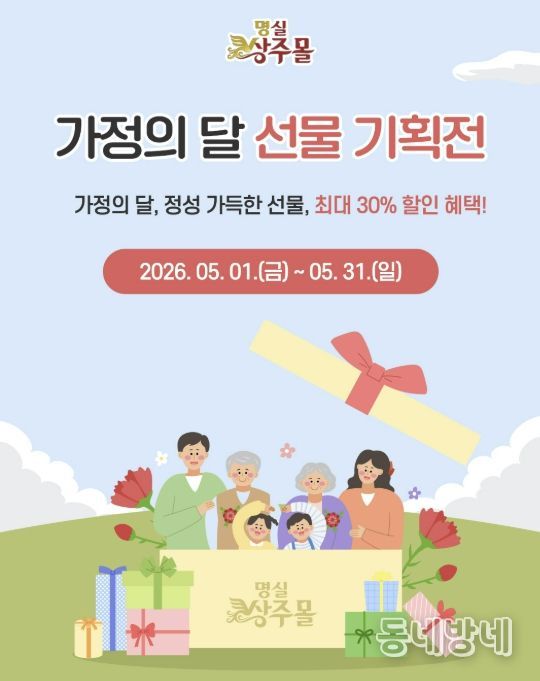 동네방네 김형규 기자 | 상주시가 운영하는 농특산물 온라인 쇼핑몰 ‘명실상주몰’에서 5월 가정의 달을 맞아 5월 1일부터 31일까지 특별 할인행사를 진행한다.