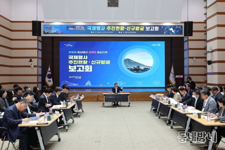 시는 29일 시청 대회의실에서 장상길 포항시장 권한대행 주재로 관련 국장 및 부서장들이 참석한 가운데 ‘국제행사 발굴보고회’를 개최하고, 부서별 유치 전략을 집중 점검했다.