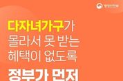 동네방네 김형규 기자 | ■ 다자녀가구가 몰라서 못 받는 혜택이 없도록 정부가 먼저 챙겨드립니다! ▷ 혜택알리미 - 내가 몰라도 찾아서 알려주는 개인 맞춤형 알림 서비스 · 다자녀 국가장학금 · 사회적 배려대상자 도시가스요금 경감 · 전기 요금 복지할인 · 에너지복지요금 지원 · 다자녀가구 자동차취득세 감면 ※ 소득, 거주지 등 개인별 상황에 따라 받을 수 있는 혜택은 달라질 수 있어요. ■ 청년이 몰라서 못 받는 혜택이 없도록 정부가 먼저 챙겨드립니다! ▷ 혜택알리미 - 내가 몰라도 찾아서 알려주는 개인 맞춤형 알림 서비스 · 청년 일경험 지원 · 청년농 창업투자 심층 컨설팅 · 청년주택드림 청약통장 · 청년 월세 한시 특별 지원 · 청년 문화예술패스 지원 ※ 소득, 거주지 등 개인별 상황에 따라 받을 수 있는 혜택은 달라질 수 있어요. ■ 어르신이 몰라서 못 받는 혜택이 없도록 정부가 먼저 챙겨드립니다! ▷ 혜택알리미 - 내가 몰라도 찾아서 알려주는 개인 맞춤형 알림 서비스 · 65세 이상 폐렴구균 국가예방접종사업 · 노인 무릎인공관절 수술 지원 · 노인 일자리 및 사회활동 지원 ·