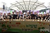동네방네 김형규 기자 | 향긋한 송이 내음이 봉화 전역을 물들이며, 가을을 대표하는 미식 축제인 ‘제29회 봉화송이축제’가 10월 16일 봉화읍 내성천 체육공원 일원에서 화려하게 막을 올렸다. ‘송이향에 반하고, 한약우 맛에 빠지다’를 슬로건으로 한 이번 축제는 오는 19일까지 4일간 이어지며, 송이와 한약우, 농·특산물, 지역 문화가 어우러진 가을 종합선물세트로 펼쳐진다. 개막 첫날, 청정 봉화의 농산물이 한 그릇에 담긴 ‘오색오미 대형 비빔밥 퍼포먼스’가 축제의 서막을 알렸다. 500인분의 비빔밥이 현장에서 무료 시식으로 제공되자 방문객들은 긴 줄을 서며 봉화의 맛을 만끽했다. 이날 저녁 가을 정취와 함께 열린 개막식에는 이수연, 정다경, 최재명, 천록담, 손빈아 등 인기 트로트 가수들이 무대에 올라 흥겨운 분위기를 이끌어내며 4일간의 축제 여정의 시작을 본격적으로 알렸다. 특히 올해 새롭게 선보인 ‘송이주막존’과 ‘내성천 송이라면존’이 단연 화제다. ‘송이주막존’은 초가집 형태의 전통 주막 텐트로 도토리묵, 전, 송이탕 등 향토 음식과 봉화 전통주가 어우러지며 맛과 쉼