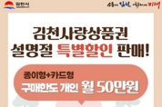 동네방네 김형규 기자 | 김천시는 오는 설 명절을 앞두고 2월 한달간 김천사랑상품권을 15% 특별 할인 판매하여 지역 소비 활성화에 나선다. 시는 이번 설 명절 특별 할인 판매로 침체된 골목상권에 활력을 불어넣고, 지역경제 회복에도 긍정적인 영향을 미칠 것으로 기대하고 있다. 지역 내 소비 촉진 및 민생경제 활성화를 위해 개인이 카드 충전 또는 상품권을 구매할 경우, 종이형 상품권 구매한도 30만 원을 포함해 월 최대 50만 원까지 할인혜택을 제공한다. 개인 보유 한도는 최대 100만 원이며, 연매출 30억 원을 초과하는 가맹점에서는 기존과 같이 결제가 제한될 예정이다. 이번 설 명절 특별 할인 판매로 선물·장보기 등 가계 지출이 늘어나는 시기에 실질적인 가계 부담을 덜어주는 동시에 지역 내 소비 확대로 이어져 지역 상권 전반에 크게 도움이 될 전망이다. 김천시 관계자는 “이번 김천사랑상품권 특별 할인 판매로 설 명절 소비를 촉진하는 마중물 역할을 할 것으로 기대하고 있다. 경기 침체로 어려운 상황에 놓인 지역 소상공인과 시민들을 위해 앞으로도 다양한 민생경제 활성화 방안을 지속적으로 추진해 나가겠