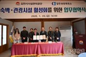 동네방네 김형규 기자 | 김천상공회의소(회장 안용우)는 김천시시설관리공단과 ‘회원사 서비스 강화를 위한 업무협약’을 체결했다. 이번 협약을 통해 김천시시설관리공단에서 위탁운영 중인 숙박시설인 수도산자연휴양림과 부항댐 생태휴양펜션, 산내들오토캠핑장, 증산수도계곡캠핑장을 비롯해 관광시설인 김천 추풍령 테마파크와 김천 사계절썰매장을 김천상공회의소 회원사 임직원이 이용시 할인혜택을 제공하기로 했다. 비수기에 한정해 김천상공회의소 회원사 임직원(개인)은 이용료의 40%, 워크숍 등 기관 차원의 행사(단체)로 이용할 경우 이용료의 50%를 할인한다. 안용우 김천상공회의소 회장은 “지역 경제를 위해 애쓰고 있는 회원사 임직원들에게 많은 혜택이 돌아갈 수 있도록 힘쓰겠다”며, “이번 협약을 통해 회원사가 관내 우수한 숙박ˑ관광시설을 합리적인 가격으로 이용할 수 있는 좋은 기회가 됐으면 한다”고 밝혔다. 김재광 김천시시설관리공단 이사장은 “이번 협약은 공단 시설 운영의 효율성을 높이고 지역 경제에 활력을 불어넣는 계기가 될 것”이라며, “앞으로도 다양한 기관과의 협업을 통해 시민과 이용객 모두에게 혜택이 돌아갈