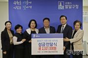 동네방네 김형규 기자 | 수원시 팔달구와 구 지역사회보장협의체는 지난 15일 구청장실에서 ‘팔달구 이웃사랑 바자회’ 성금 전달식을 가졌다. 지난 9월 23일 팔달구 지역사회보장협의체가 주관하고, 관내 10개 동 지역사회보장협의체 및 사회복지시설, 유관기관이 힘을 모아 추진한 ‘팔달구 이웃사랑 바자회’ 행사를 통해 전달된 성금은 총 252만 1천원으로, 해당 성금은 팔달구 취약계층을 지원하기 위한 구 특화 사업에 사용할 예정이다. 권남호 구 지역사회보장협의체 공동위원장은 “이웃의 어려움을 함께 나누기 위해 한마음으로 참여해주신 분들께 감사드린다”며, “이번 성금이 지역 내 어려운 이웃들에게 따뜻한 희망으로 전해지길 바란다”고 말했다. 이상균 팔달구청장은 “팔달구민의 자발적인 참여와 나눔이 지역사회를 더욱 따뜻하게 만든다”며, “앞으로도 민관이 함께하는 복지공동체 실현을 위해 적극 노력하겠다”고 밝혔다.
