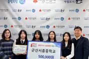동네방네 김형규 기자 | 군산서흥중학교가 학교 행사로 진행한 축제 부스 운영을 통해 마련한 수익금 50만 원을 군산시에 이웃돕기 성금으로 기탁했다. 23일 시는 이번 성금은 학생들이 중심이 되어 학부모와 함께 학교 행사 운영에 참여해 마련했으며, 중학생들의 자발적인 참여와 나눔의 의미를 담고 있다고 설명했다. 기탁식에 참석한 김나라 교사는 “학생들이 이번 기부를 통해 일상에서 자연스럽게 나눔을 실천하며 이웃을 돌아보는 계기가 됐다.”라며 “앞으로도 학생들이 주도적으로 참여하는 나눔 활동을 이어가겠다.”라고 밝혔다. 군산시 관계자는 “학생들이 직접 정성을 모아 이웃사랑을 실천했다는 점에서 더욱 뜻깊다.”라며 “이번 성금 기탁이 나눔의 가치를 배우는 소중한 경험이자, 지역사회에 따뜻한 울림을 전하는 계기가 되길 바란다.”라고 말했다.