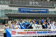 동네방네 김형규 기자 | 경주시 미래발전자문위원회는 21일 경주역 일대에서 2025 APEC 정상회의의 성공개최를 기원하는 시민참여 캠페인을 실시했다. 이번 캠페인은 청결하고 친절한 도시 이미지를 세계에 알리고 ‘살기 좋은 글로벌 도시, 경주’의 위상을 확산하기 위해 마련됐다. 이날 위원들은 APEC 홍보물을 시민과 관광객에게 배포하며 정상회의 개최 의의와 경주의 역할을 알렸고, 경주역 주변 및 광장 일대에서 쓰레기 수거와 환경정비 활동을 펼쳐 쾌적한 도시환경 조성에 앞장섰다. 또한 택시 기사와 상가 상인들을 대상으로 ‘미소와 인사’ 친절 캠페인을 진행하며 경주의 따뜻하고 밝은 이미지를 널리 전파했다. 이와 함께 APEC 홍보 및 친절문화 확산 카드뉴스를 시민들에게 배포해 자발적인 참여 분위기를 이끌었다. 참여자들은 “시민 한 사람의 참여가 APEC 성공의 열쇠이자, 경주의 글로벌 위상을 높이는 힘이 된다”라며, “깨끗한 환경과 친절한 미소로 세계 손님을 맞이하자”고 동참을 당부했다.