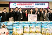 동네방네 김형규 기자 | 지난 2일, MG하남새마을금고는 설 명절을 맞아 ‘사랑의 좀도리 운동’의 일환으로 백미 200포 총 2,000kg을 하남시미사강변종합사회복지관에 전달하며 지역사회 내 취약계층 이웃을 위한 따뜻한 나눔을 실천했다. ‘사랑의 좀도리 운동’은 쌀을 한 숟가락씩 덜어 모아 어려운 이웃을 돕는 전통적인 나눔 활동으로, MG하남새마을금고는 오랜 기간 이 운동을 통해 지역사회 취약계층을 위한 나눔을 지속적으로 이어오고 있다. 이번에 전달된 백미 200포는 설 명절을 앞두고 생계 부담이 큰 취약계층 가정에 전달되어 따뜻한 명절을 보내는 데 도움을 줄 예정이다. 이날 전달식에는 MG하남새마을금고 이점복 이사장 및 임직원을 비롯하여 하남시민생안정후원회 한상영 회장, 하남시미사강변종합사회복지관 조혜연 관장, 하남시니어클럽 양우식 관장, LH행복꿈터 지역아동센터 김길임 센터장, 다함께돌봄센터 김고운 센터장이 함께 자리를 빛내주었다. MG하남새마을금고는 매년 백미 지원뿐만 아니라 냉방기기 지원, 김장김치 지원, 생활용품 후원, 지역사회 상생 활동 등 다양한 사회공헌 활동을 통해 지역사회와 함께 성장하는 금융기