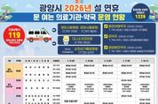동네방네 김형규 기자 | 광양시는 설 명절 연휴 기간 시민과 귀성객들이 안전하고 편안한 명절을 보낼 수 있도록 2월 14일부터 18일까지 5일간 ‘설 연휴 종합상황실’을 운영한다고 밝혔다. 이번 종합상황실은 ▲총괄반 ▲생활민원기동반 ▲재난상황반 ▲진료대책반 ▲일반민원처리반 등 총 5개 반, 하루 평균 39명이 근무하는 체계로 연휴 기간 총 195명의 인력을 투입해 운영되며, 각종 비상 상황에 신속하고 체계적으로 대응해 연휴 기간 발생할 수 있는 생활 불편을 최소화할 계획이다. 먼저 총괄반은 종합상황실 운영 전반을 총괄하며 각 반의 상황을 종합 관리하고, 연휴 기간 상황 유지와 신속한 의사결정을 담당한다. 생활민원기동반은 환경·도로·교통·수도·쓰레기 수거·가로등 등 시민 일상과 직결된 민원을 집중 처리해 연휴 중 불편 사항을 신속히 해소하며, 재난상황반은 자연재해와 각종 긴급 상황에 대비해 24시간 대응 체계를 유지하며 시민 안전 확보에 만전을 기한다. 특히 진료대책반은 연휴 기간 지역 내 응급의료기관과 긴밀히 협력해 24시간 응급실과 당번 의료기관·약국 운영 체계를 유지함으로써 갑작스러운 응급 상황