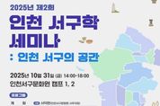 동네방네 김형규 기자 | ▶ 인천 서구의 공간적 가치 조명 인천광역시 서구문화원(원장 정군섭)은 오는 10월 31일 오후 2시 인천서구문화원 캠프에서 ‘2025년 제2회 인천 서구학 세미나’를 개최한다고 밝혔다. 이번 세미나는 ‘인천 서구의 공간’을 주제로 서구의 역사·지리·산업·문화유산 등 지역의 다양한 면모를 입체적으로 살펴보는 자리다. 세미나는 서덕현 인천서구문화원 사무국장의 개회로 시작해 ▲서구의 공간적 특성과 변화(최정학 국사편찬위원회 사료조사위원) ▲지형과 지리적 환경으로 보는 인천 서구(최원길 전. 서인천고등학교 지리 교사) ▲인천 서구 문화유산의 현황과 특징(김영준 인하대학교 박사) ▲사회경제적 입지로 본 서구(강철구 인천대학교 강사) 등 4개의 주제 발표가 이어진다. 발표 이후에는 강덕우 인천개항장연구소 대표가 좌장을 맡아 역사·도시 전문가들과 함께 종합토론을 진행한다. 토론에는 김경은 소설가, 남동걸 인천학연구원 상임연구위원, 손민환 부평역사박물관 학예연구팀장, 김태훈 (협)다온정책연구원 연구위원 등이 참여해 서구 공간 가치와 미래 방향을 논의한다. 인천서