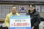 동네방네 김형규 기자 | 한국테크노링과 태안군학부모회장협의회·학교운영회위원장협의회가 충남 태안군에 장학금을 기탁하며 지역사랑의 마음을 전했다. 군에 따르면, 한국테크노링은 지난 8일 군청 군수실에서 고기현 팀장이 참석한 가운데 기탁식을 갖고 장학금 500만 원을 태안군사랑장학회에 기탁했다. 한국테크노링은 아시아 최대 규모의 타이어 테스트 트랙으로 한국타이어가 지난 2022년 남면에 건립했으며, 그동안 전국어울림마라톤대회와 설날장사 씨름대회, 태안군민체육대회 등 각종 지역 행사를 후원하고 적돌문학회 등 지역 문화단체와 함께 장학사업도 진행하며 지역사회와의 유대감을 높이고 있다. 고기현 팀장은 “이번 장학금 기탁은 그동안 한국테크노링이 추진해 온 지역 상생 활동의 연장선”이라며 “이번 장학금 기탁이 지역의 교육발전에 작은 밑거름이 되길 바라고 한국테크노링과 태안의 동반 성장을 위해 앞으로도 최선을 다하겠다”고 말했다. 같은날 태안군학부모회장협의회 및 태안군학교운영위원장협의회도 태안군청을 찾아 태안군사랑장학회에 장학금 200만 원을 전달했다. 이는 지역 학생들에게 더 나은 교육환경을 제공하고