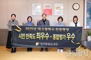 동네방네 김형규 기자 | 대구 서구청은 대구시에서 실시한 2025년 민원행정 시민 만족도 조사에서 최우수, 종합평가에서 우수 기관에 선정됐다고 밝혔다. 대구시는 민원행정서비스 품질 향상을 위해 매년 ‘민원행정 시민 만족도 조사’를 실시하고 있다. 시민 만족도 조사는 지난해 10월부터 올해 9월까지 민원 서비스를 이용한 시민을 대상으로 민원 서비스 과정, 서비스 결과, 민원 응대 태도 및 전반적인 만족도에 대해 전화 설문의 형태로 이루어졌으며, 서구는 9개 구·군 중에서 가장 높은 종합만족도 96.8점을 얻어 ‘최우수’기관으로 선정되는 쾌거를 이루었다. 또한 서구는 대구시에서 매년 실시하고 있는 민원행정 종합평가에서도 3년 연속‘우수’기관으로 선정되는 영예를 안았다. 대구시의 민원행정 종합평가는 9개 구·군의 민원제도 운영 분야 14개 지표와 민원처리 현황 분야 8개 지표 등 총 22개 지표에 걸쳐 이루어진다. 서구는 안전한 근무환경 조성, 스마트 민원서비스 운영 지원, 고충민원 처리·관리 및 해결 노력 등 전반적인 분야에서 높은 평가를 받았다. 특히, 2일 이상 법정민원 처