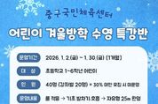 동네방네 김형규 기자 | 인천중구시설관리공단은 겨울방학 기간 초등학생을 대상으로 기초 수영 능력 향상과 건전한 여가선용 기회를 제공하기 위해 ‘겨울방학 어린이 수영 특강반’을 운영하고, 회원 모집을 추진한다고 18일 밝혔다. 이번 특강반은 2026년 1월 2일부터 1월 30일까지 중구국민체육센터 수영장에서 초등학교 1~6학년 어린이를 대상으로 운영된다. 강습 내용은 물 적응을 시작으로 기초 발차기·호흡법을 거쳐 자유형 25m 완영을 목표로 구성됐다. 회원 모집은 12월 26일부터 12월 31일까지 진행된다. 중구국민체육센터 홈페이지를 통한 온라인 선착순 접수로 운영되며, 모집 인원은 총 40명(반별 20명)이다. 강습은 주 3회(월, 수, 금) 운영되며 수강료는 44,000원이다. 공단 관계자는 “겨울방학 기간 어린이들이 즐겁게 수영을 배우며 기초 수영 능력을 기를 수 있도록 특강반을 준비했다”라면서 “많은 어린이가 참여해 건강한 방학을 보낼 수 있기를 바란다”라고 말했다. 어린이 수영 특강반 신청 등 프로그램과 관련해 더 자세한 사항은 중구국민체육센터 홈페이지