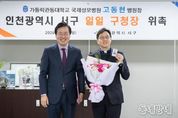 동네방네 김형규 기자 | 인천 서구가 지난 19일 가톨릭관동대학교 국제성모병원 고동현 의료원장 겸 병원장을 ‘일일 구청장’으로 위촉했다. 이번 일일 구청장 위촉은 지역 대표 의료기관과의 소통과 협력으로 주민 건강 증진과 지역 발전을 위해 마련됐다. 고동현 병원장은 이날 서구청사를 방문해 강범석 서구청장으로부터 일일 구청장 위촉장을 받고 간부 공무원과의 티타임을 시작으로 ‘일일 구청장’으로서 다양한 일정을 소화했다. 고동현 병원장은 첫 공식 일정으로 2026년 적십자 특별회비 전달식에 참여해 강범석 서구청장과 함께 적십자 특별회비 200만 원을 대한적십자사에 전달했다. 이어 청사 내 주요 행정 현장을 둘러보며 행정 운영을 직접 살폈다. 민원실을 방문해 여권 교부 업무를 직접 체험했으며, CCTV 통합관제센터와 악취·미세먼지 통합관제센터를 방문해 운영 현황을 청취하고 근무 중인 직원들을 격려하기도 했다. 마지막으로 고 병원장은 서구보건소를 방문해 보건소장으로부터 보건소 운영 현황을 듣고 보건소 주요 시설을 둘러봤다. 고동현 병원장은 “평소 쉽게 접하기 어려운 구청