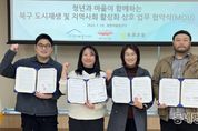 동네방네 김형규 기자 | 대구 북구 도시재생지원센터와 지역 청년기업 커뮤니티디자인 내마음은 콩밭 협동조합, 태종기획은 1월 19일 복현어울림센터에서 북구 지역사회 활성화 및 도시재생사업의 효과적인 추진을 위해 상호 협력 강화 업무협약(MOU)을 체결했다. 세 기관은 이번 협약을 통해 도시재생과 커뮤니티디자인, 청년 기획 역량을 연계하여 청년과 마을이 함께 어우러지는 지속 가능한 지역공동체 조성을 목표로 상호 협력해 나가기로 했다. 협약의 주요 내용으로는 ▲북구 도시재생사업과 연계한 커뮤니티 활성화 프로그램 공동 기획·운영 ▲청년 및 대학생의 지역사회 참여 확대를 위한 청년 문화 프로그램 및 역량강화 활동 추진 ▲청년과 주민이 함께 참여하는 주민 주도형 도시재생 프로젝트 협력 ▲도시재생 현장지원 활동 및 주민 교육·컨설팅 사업 공동 추진 등이 포함되어 있다. 특히 이번 협약은 청년의 기획력과 창의성이 마을의 일상과 결합해 청년에게는 지역에서의 실질적인 활동 기회를 제공하고, 마을에는 새로운 활력을 불어넣는 상생 구조를 만들어간다는 점에서 의미가 크다. 김은윤 북구 도시재생지원센터장은 “이번 3자 협약