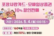 동네방네 김형규 기자 | 포항시가 침체된 민생경제에 활력을 불어넣기 위해 내달 4일부터 카드형·모바일 포항사랑상품권(포항사랑카드) 160억 원을 10% 할인된 금액으로 판매한다. 시는 올해 들어 이달까지 총 1,230억 원 규모의 포항사랑상품권을 발행한 데 이어, 이번 할인 판매분 160억 원을 유통해 지역 상권 내 소비를 촉진하고 경기 회복 흐름을 이어간다는 방침이다. 특히 시는 고유가·고물가로 인한 시민들의 생활 안정을 위해 지급하는 고유가 피해지원금의 지급수단에 포항사랑카드를 포함해 사용 편의를 높였으며, 이번 할인 판매를 병행해 지역 내 소비 활성화를 유도하고 자금의 역외 유출을 방지할 계획이다. 이번에 할인 판매하는 포항사랑상품권이 위축된 지역 소비를 촉진해 소상공인의 매출 회복에 도움이 되고 자금의 지역 내 순환 구조를 강화해 지역경제 회복을 견인하는 마중물 역할을 할 것으로 기대된다. 가정의 달을 맞아 제공되는 포항사랑카드 10% 할인 혜택으로 시민들의 가계 부담 완화에도 도움이 될 것으로 보고 있다. 개인 구매 한도는 월 40만 원, 보유 한도는 70만 원이다. &n