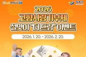 동네방네 김형규 기자 | 장흥군은 설 명절을 앞두고 고향사랑기부제 활성화를 위해 1월 20일부터 2월 20일까지 ‘2026 설맞이 고향사랑기부제 더 드림 이벤트’를 진행한다. 이벤트 기간 중 ‘고향사랑e음’을 통해 장흥군에 10만 원 이상 기부하면 별도의 신청 절차 없이 자동으로 이벤트에 응모된다. 해당 조건을 충족한 기부자 전원에게는 모바일 상품권 5,000원이 경품으로 제공된다. 또한 이벤트 종료 후에는 무작위 추첨을 통해 10명을 선정, 5,000원권 모바일 상품권을 추가로 증정하는 혜택도 마련돼 있어 최대 1만 원 상당의 경품을 받을 수 있다. 장흥군 관계자는 “설 명절을 맞아 고향을 응원하는 따뜻한 마음을 기부로 표현할 수 있도록 이번 이벤트를 마련했다”며 “앞으로도 고향사랑기부제가 지역 발전과 기부자 만족을 함께 높일 수 있도록 다양한 홍보와 혜택을 지속적으로 추진해 나가겠다”고 말했다. 한편, 고향사랑기부제는 개인이 주소지를 제외한 다른 지방자치단체에 1인당 연간 2,000만 원까지 기부할 수 있는 제도로, 기부자는 세액공제 혜택과 함께 지역 특산물 등의 답례품을 받을 수