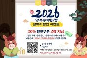 동네방네 김형규 기자 | 양주시가 운영하는 양주시 농특산물 온라인 쇼핑몰 양주농부마켓에서 다가오는 설 명절을 맞아 고객들에게 특별한 혜택을 제공하고자 설맞이 할인 이벤트를 진행한다. 이번 이벤트는 1월 26일부터 2월 10일까지 진행하고, 기간 내 양주농부마켓 로그인 시 20% 할인쿠폰 2장이 자동 지급된다. 단, 예산 소진 시 조기 종료될 수 있다. 양주시 관계자는 “설 명절을 앞두고 시민들이 부담없이 풍성한 명절을 준비할 수 있도록 이번 이벤트를 마련했다”며 “양주시에서 생산한 품질 좋은 농축산물과 가공품 등 다양한 상품과 선물세트가 준비돼 있으니 많은 관심과 구매를 부탁드린다”고 말했다.